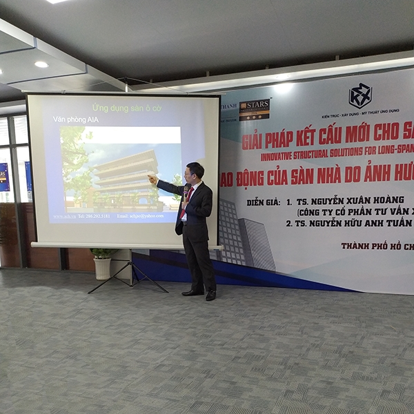 Hình 3: TS. Nguyễn Xuân Hoàng trình bày ứng dụng sàn ô cờ ACH cho tòa nhà văn phòng.