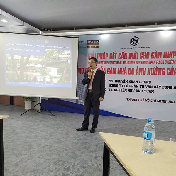 Tại hội thảo, TS. Nguyễn Xuân Hoàng đã chia sẻ thông tin về ứng dụng công nghệ sàn ô cờ ACH vào các dự án, cụ thể như: chung cư, khách sạn, trung tâm thương mại, trường học, nhà máy, văn phòng, nhà ở,… Các công trình này có mặt ở nhiều tỉnh thành phố như Hà Nội, Hồ Chí Minh, Nha Trang, Vinh, Huế, Quảng Ngãi, Bình Định, Hải Dương, Ninh Bình, Quảng Bình, Sóc Trăng, Bình Dương,… Sàn ô cờ ACH giúp chủ đầu tư tiết kiệt được 20% chi phí xây dựng, giúp thi công nhanh và chất lượng tốt.